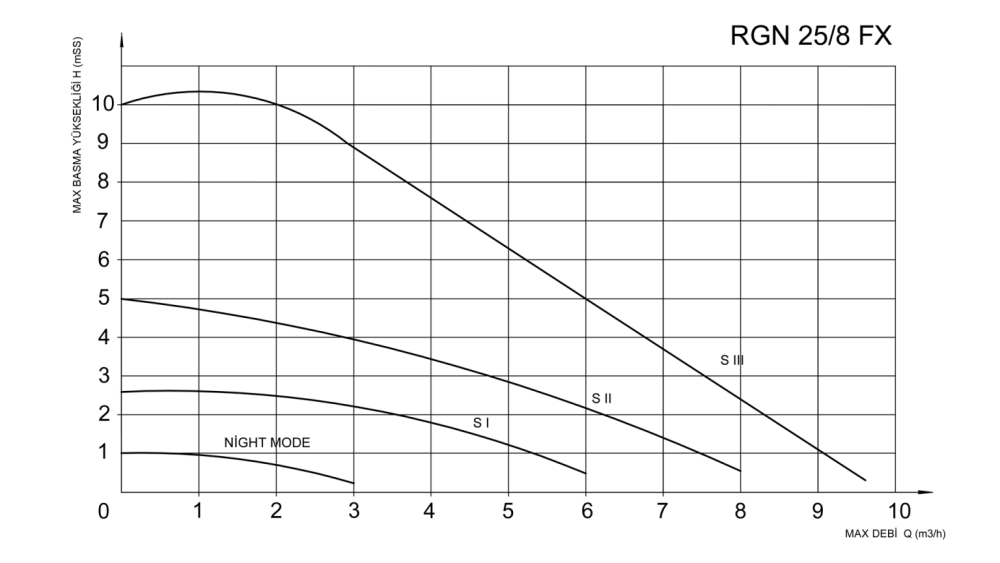 S (SABİT HIZ EĞRİSİNDE) ÇALIŞMA SEÇENEĞİ : Sabit hız eğrisi moduna ayarlandığında pompa sistemdeki basınç kayıplarını göz önüne alarak ayarladığınız.