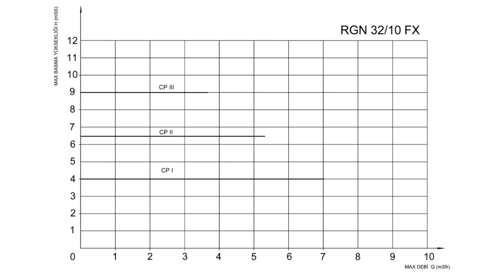 CP (SABİT BASINÇ EĞRİSİNDE) ÇALIŞMA SEÇENEĞİ : Pompa ayarlamış olduğunuz sabit basınç eğrisinde çalışarak akış debisini ayarlar. Pompa basıncı seçmiş olduğunuz moda göre sabit kalır ve pompa bu çizgi üzerinde çalışır.