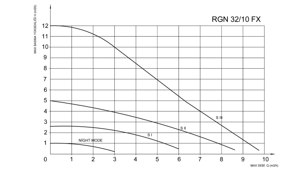 S (SABİT HIZ EĞRİSİNDE) ÇALIŞMA SEÇENEĞİ : Sabit hız eğrisi moduna ayarlandığında pompa sistemdeki basınç kayıplarını göz önüne alarak ayarladığınız.