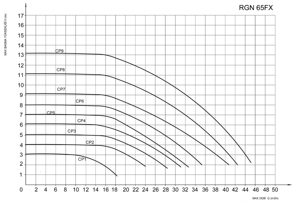 CP (SABİT BASINÇ EĞRİSİNDE) ÇALIŞMA SEÇENEĞİ : Pompa ayarlamış olduğunuz sabit basınç eğrisinde çalışarak akış debisini ayarlar. Pompa basıncı seçmiş olduğunuz moda göre sabit kalır ve pompa bu çizgi üzerinde çalışır.